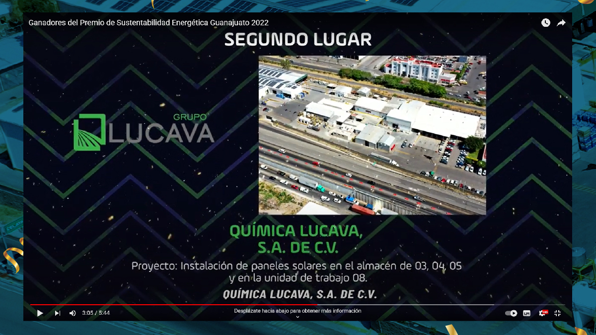 Grupo Lucava fue acreedor al Segundo Lugar, con el proyecto:  Instalación de paneles solares en el almacén de 03, 04, 05 y en la unidad de trabajo 08.